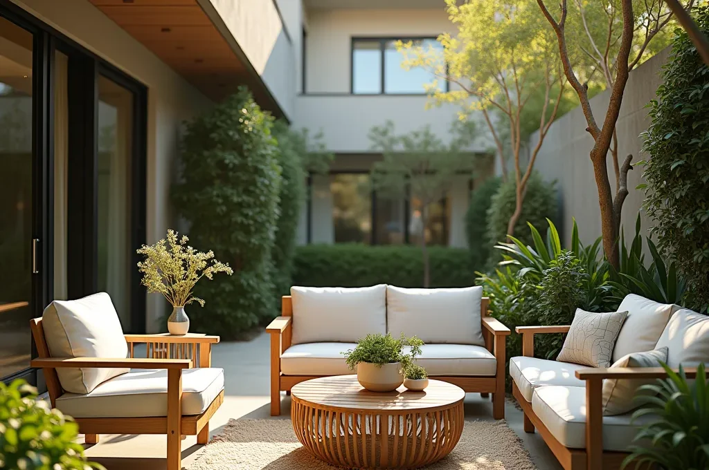 Prévoyez au minimum 70 cm de circulation autour du mobilier principal et créez des séparations visuelles avec des tapis extérieurs ou des plantes en pot pour délimiter chaque espace. Cette respiration évite l’effet d’encombrement tout en maintenant une cohérence visuelle d’ensemble.